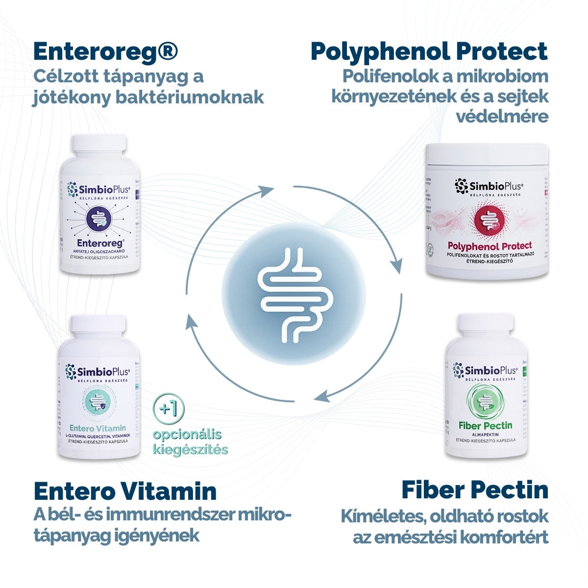 + Opcionálisan kiegészíthető az Entero Vitaminnal, a bél- és immunrendszer mikrotápanyag-igényének támogatására.